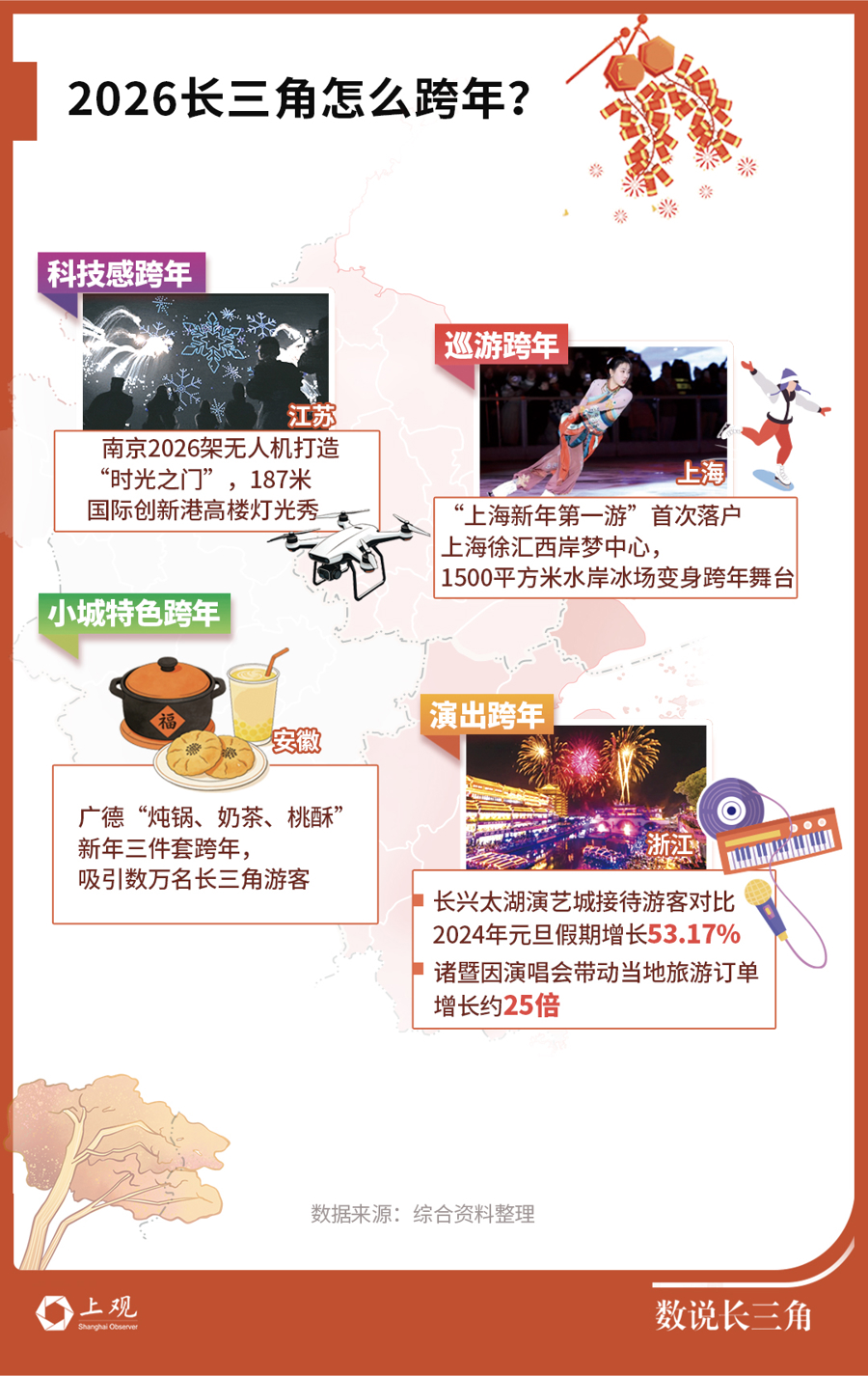 南京抓住了这一出游群体的偏好,推出25场重点跨年活动,包括2026架无人机“时光之门”表演、187米高楼灯光秀、无人机与烟花联动的浪漫大秀等,为年轻人提供充满科技感的沉浸式跨年体验。